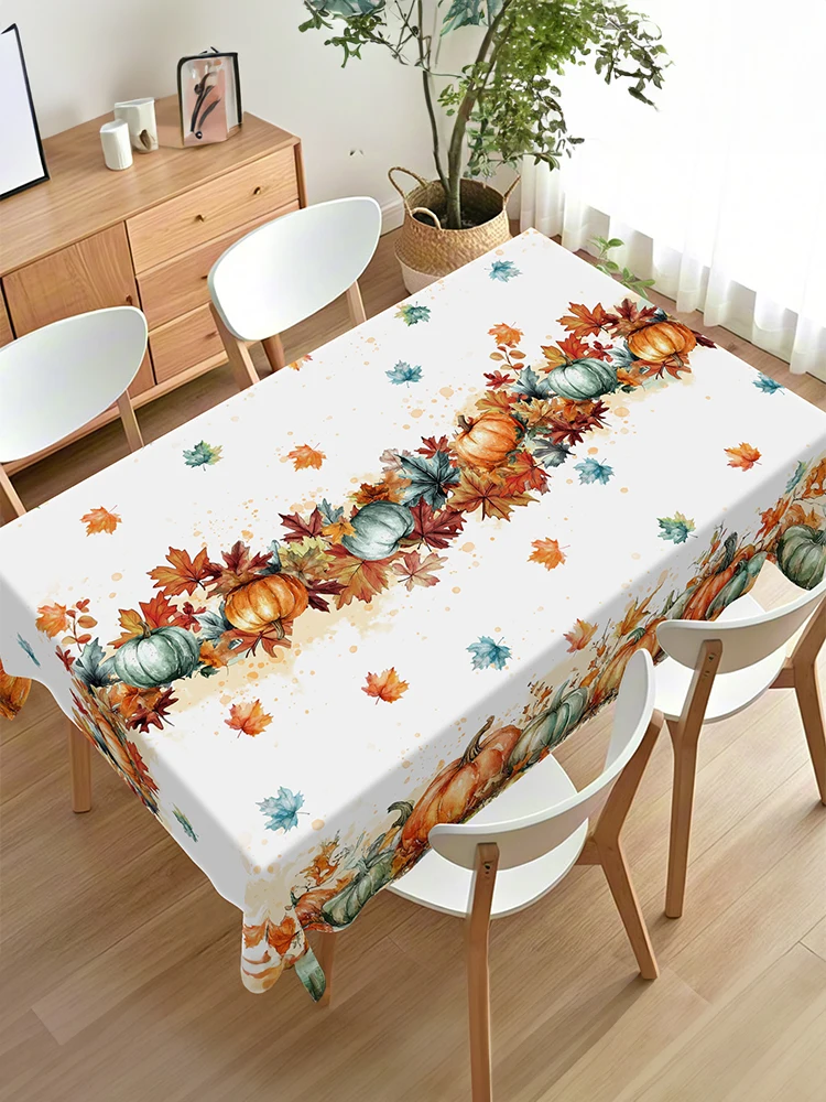 1 Piece of Autumn Thanksgiving Themed Tablecloth, Round/Rectangular Tablecloth with Pumpkin/Maple Leaf Pattern, Suitable for Autumn Holiday Parties, Family Gatherings, Gifts, Thanksgiving Table Decorations, Garden Courtyard T
