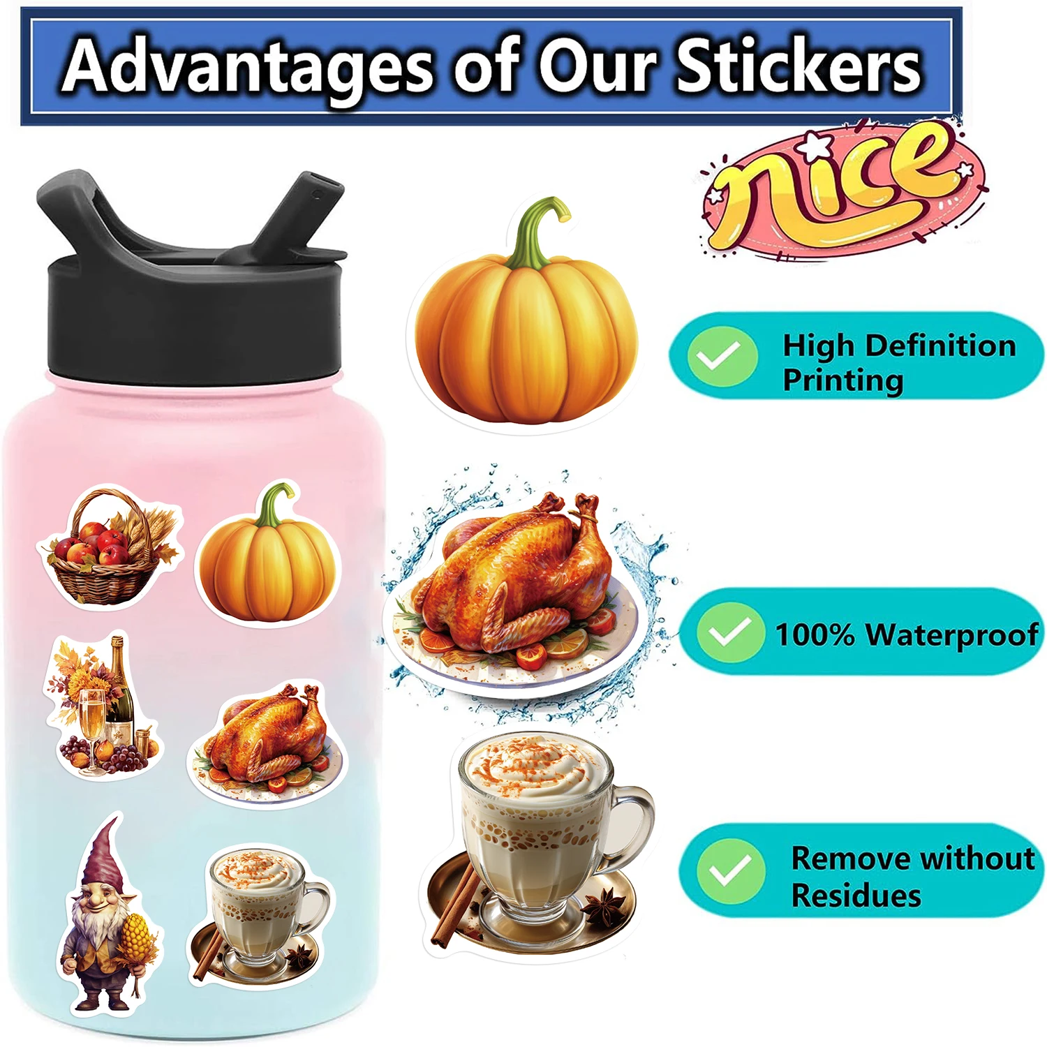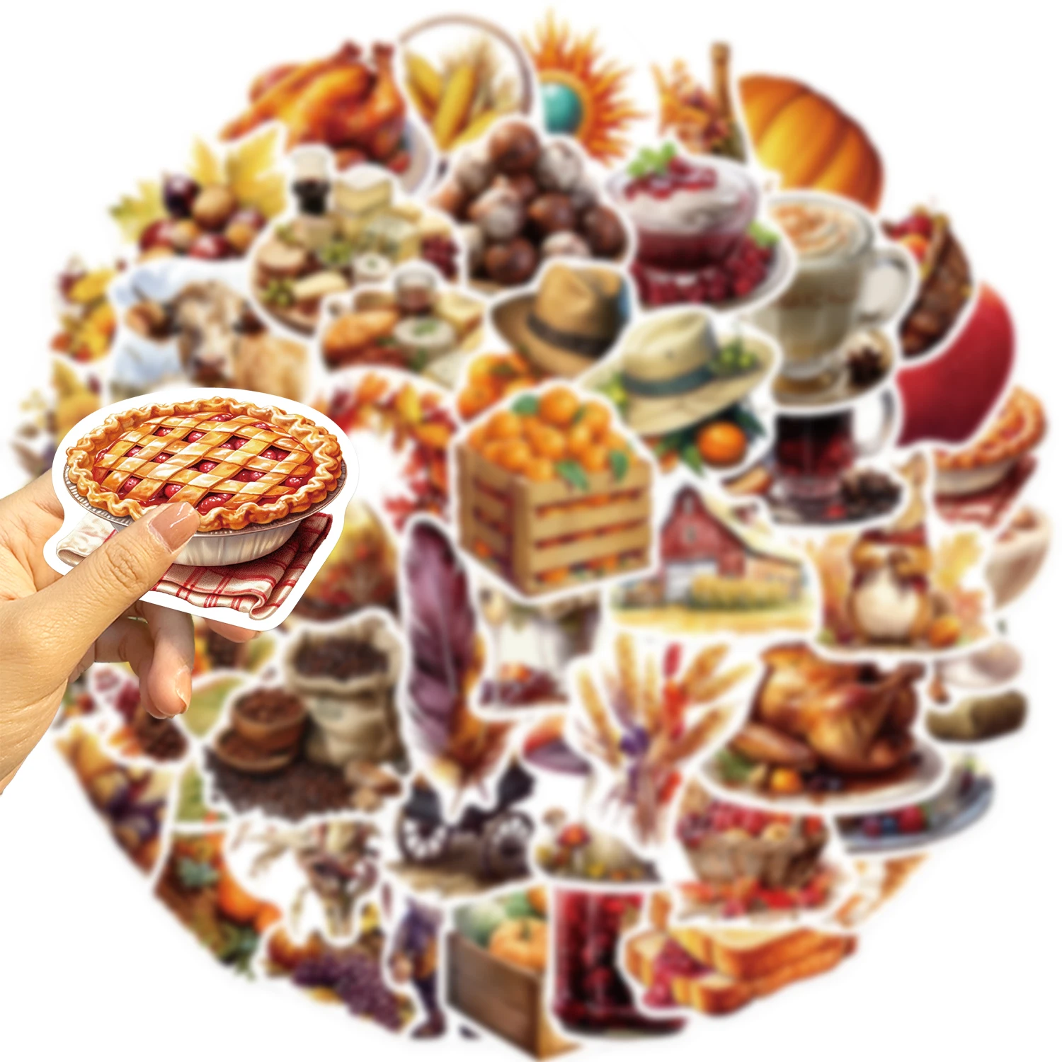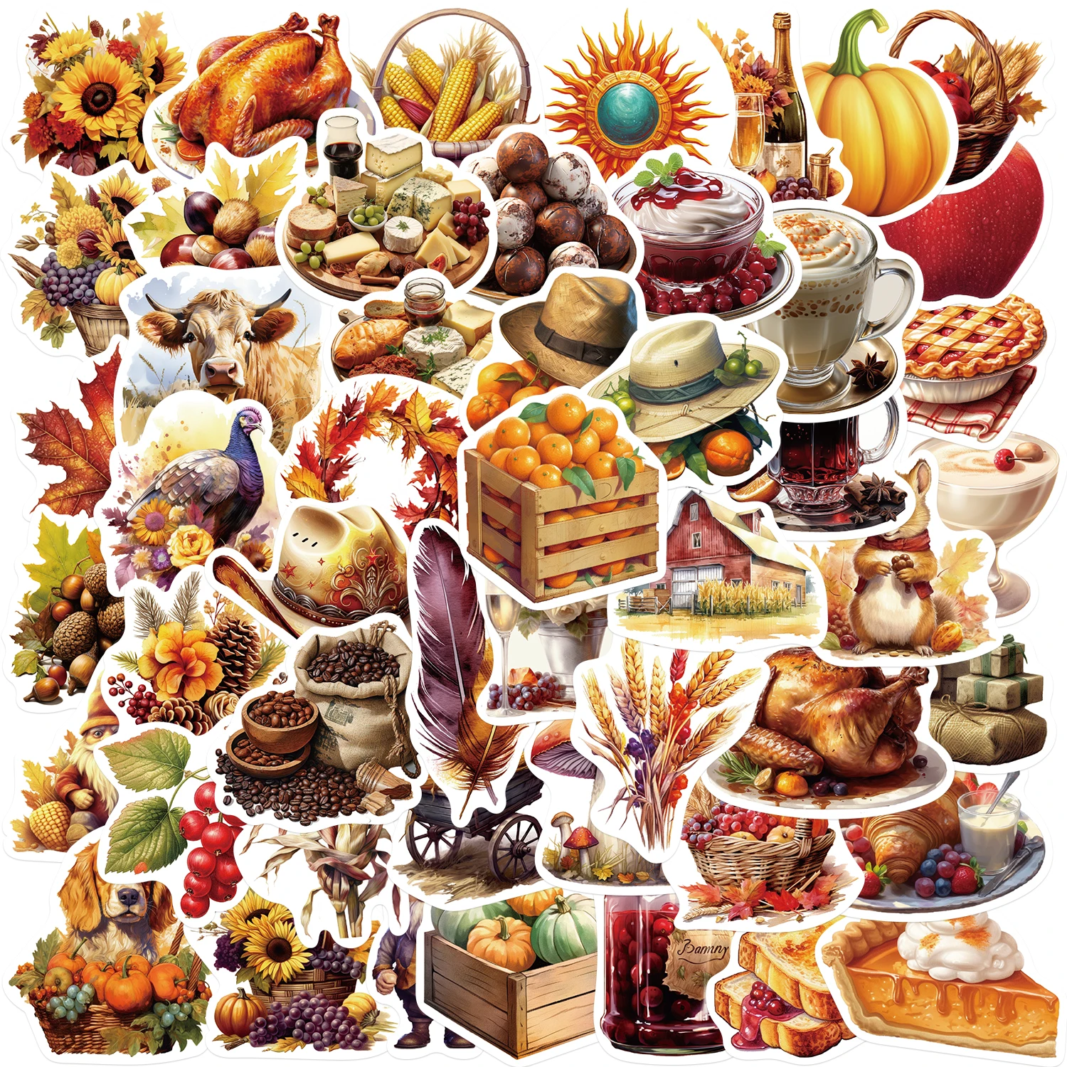 50Pcs Cartoon Thanksgiving Day Sticker Funny Pumpkin Turkey Autumn Maple Leaf Graffiti Decals DIY Laptop Luggage Skateboard