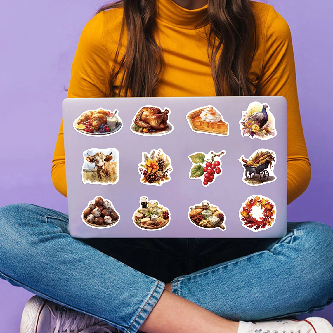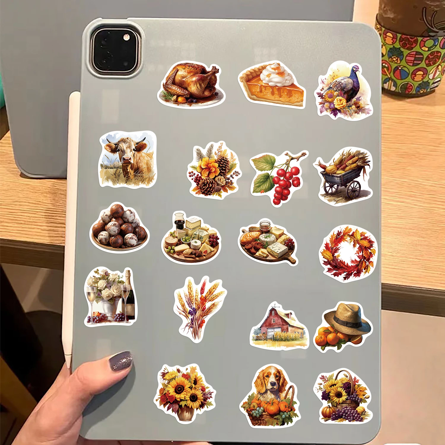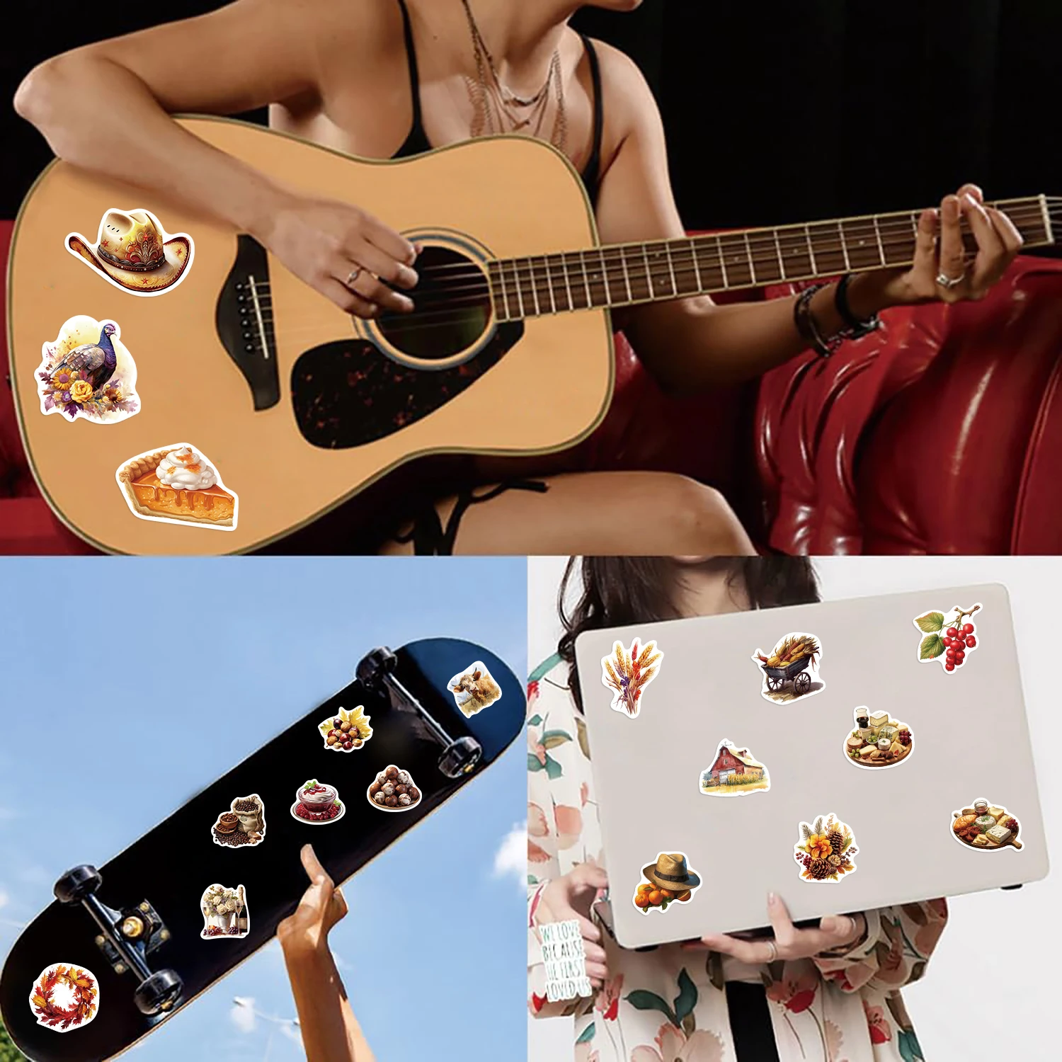 50Pcs Cartoon Thanksgiving Day Sticker Funny Pumpkin Turkey Autumn Maple Leaf Graffiti Decals DIY Laptop Luggage Skateboard