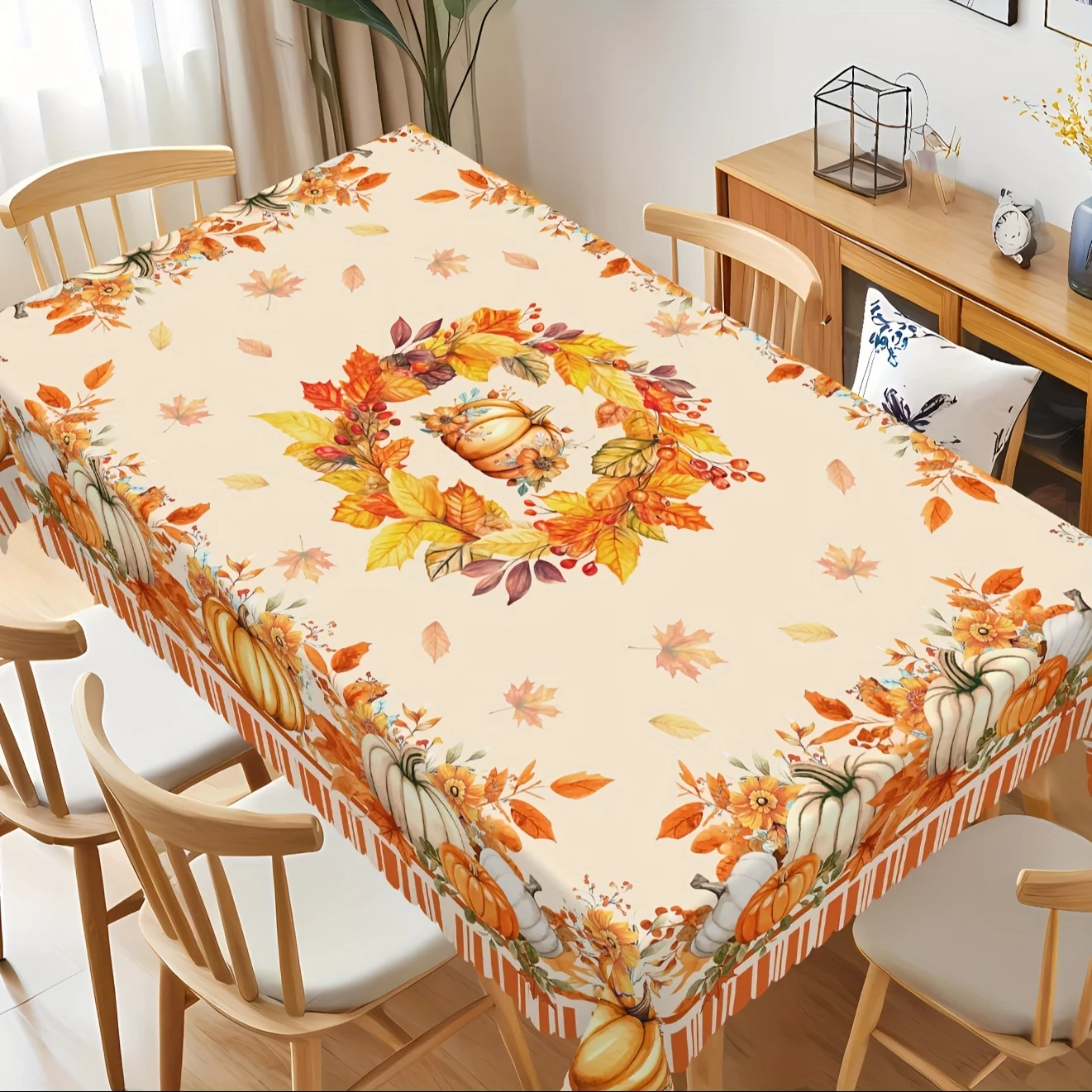 Fall Thanksgiving Pumpkin Maple Leaves Tablecloth for Table Decor Autumn Harvest Floral Kitchen Dining Table Cloth Wedding Decor