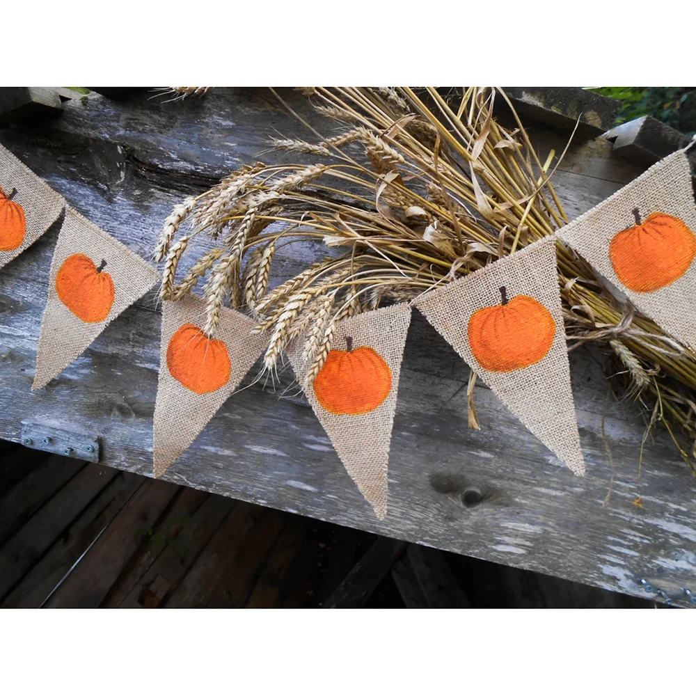 Thanksgiving Banner Fall Rustic Burlap Banner Halloween Party Home Decoration Pumpkin Bunting Backdrop Autumn Decor Supplies
