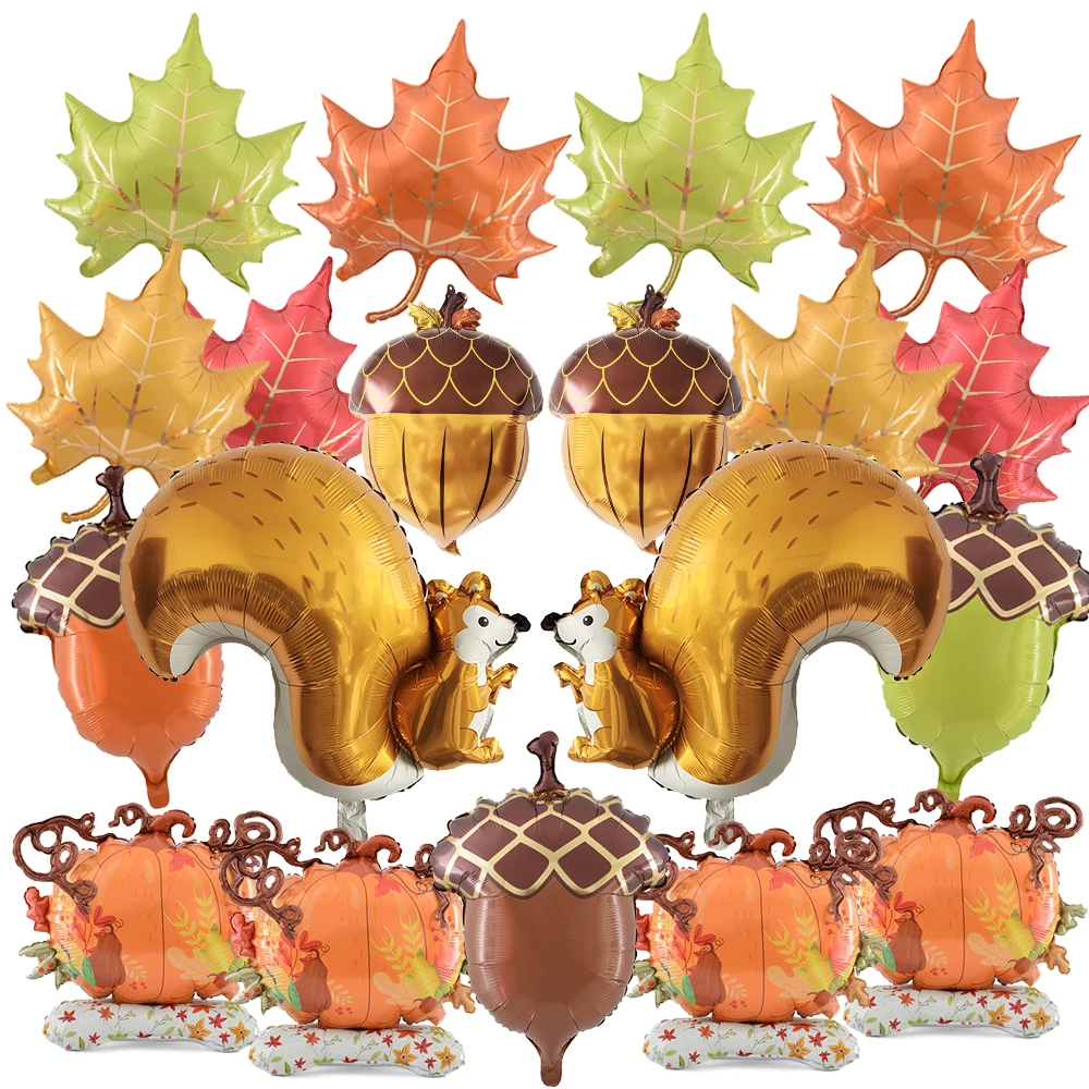 Thanksgiving Fall Harvest Party Maple Leaf Pumpkin Squirrel Acorn Foil Balloon Kids Thanksgiving Party Decor Supplies Gifts