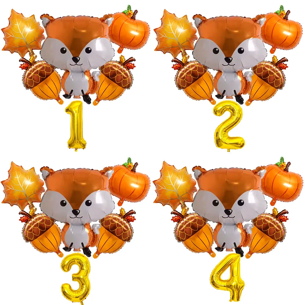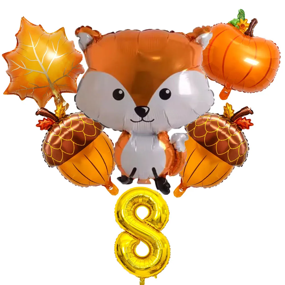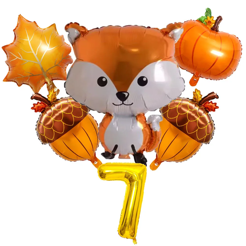 Thanksgiving Theme Forest Animals Kids Birthday Party Decoration Raccoon Fox Foil Balloon With 0-9 Number Ball Thanksgiving Gift